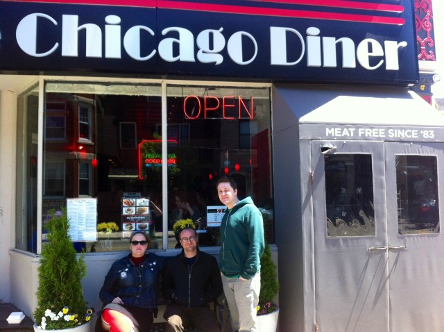 Christin Durham, Greg Svitil and Chris Goett of Silo Halo in front of the Chicago Diner