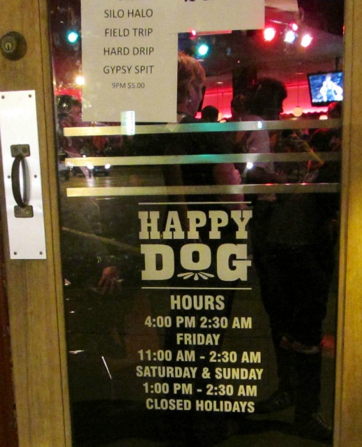 The sign at the Happy Dog
