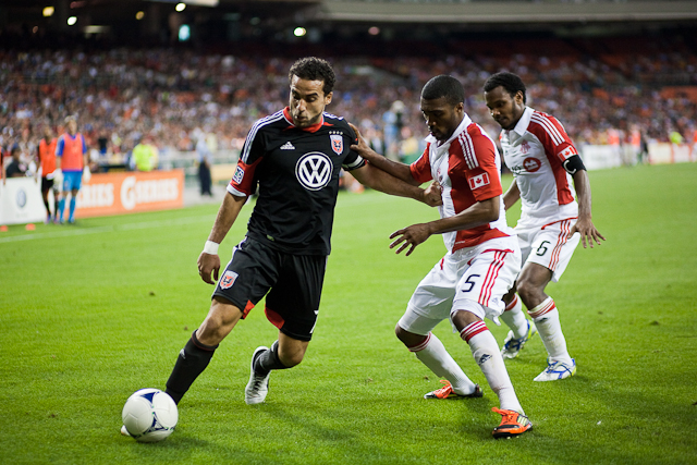 D.C. United did its best to put Toronto out of its misery as quickly as possible. De Rosario wasted just 57 seconds before heading the opener home. The goal—the fourth fastest in club history—came on a set piece. Suddenly in-form DCU midfielder Branko Bošković swung a Beckham-esque ball into the box, and DeRo made no mistake with it.