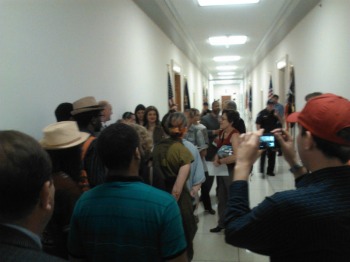 D.C. residents outside Franks’ office. Photo by @DC_VoteA crowd of D.C. residents descended on Capitol Hill this afternoon with complaints ranging from broken streetlights to potholes, but Rep. Trent Franks (R-Ariz.) was there to hear them—he closed down his office instead.