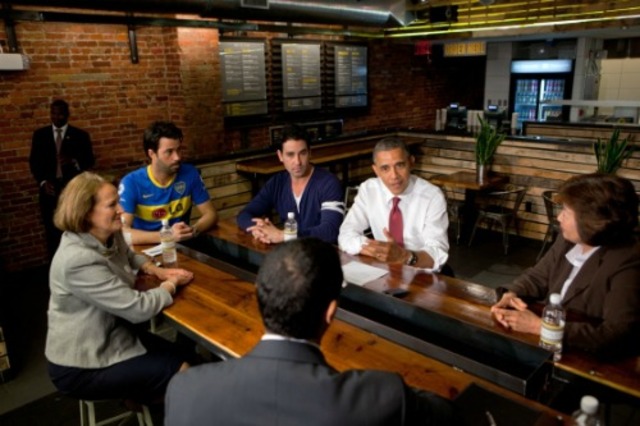Of course, this is the usual trend for eateries that get the White House’s stamp of approval. In March, following a campaign event at Boundary Road featuring the president and Michelle Obama, reservations spiked at the H Street NE restaurant. Michael Landrum called the day in May 2009 when President Obama and Vice President Joe Biden dropped in for lunch at Ray’s Hell Burger “one of the greatest days of my life.” (And it was pretty good exposure for the burger shop that had been open less than a year.)