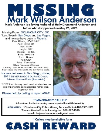 On May 12, Anderson told his family he was leaving to seek financial advice in Dallas and would not be bringing a cellphone for fear someone was tracking him, according to Oklahoma City police.