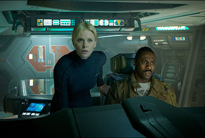 Charlize Theron and Idris Elba. (Kerry Brown/Twentieth Century Fox)Rapace’s Shaw inherits the Sigourney Weaver crown, and in one scene her facial structure looks strikingly like Weaver’s. But there is another strong female presence here: Charlize Theron as Meredith Vickers, the name of a wizened matriarch on the body of a fashion model. Theron recently camped it up as the evil Queen in the mediocre Snow White and the Huntsman, but here she effectively creates a more recognizable villain: the middle manager. Her stern, rulebound disposition is a perfect foil for Shaw, open to questions of faith and science.
