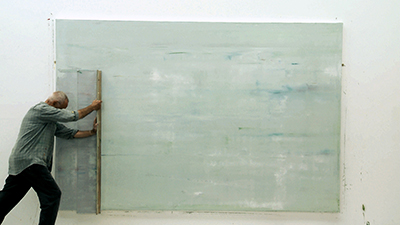 Gerhard Richter working on “Abstract painting (911-4)” (Kino Lorber)German painter Gerhard Richter is one of the greatest living artists. He was the subject of an essential retrospective that came to the Hirshhorn in 2003, and one of his massive abstracts is currently on view at the National Gallery of Art’s East Building. But would you want to watch him paint? Corinna Belz is not the first filmmaker to focus on the creation of a canvas—Victor Erice’s The Quince Tree spent more than two hours with painter Antonio López García in a more rewarding film. Richter tells Belz that he can’t paint while being watched. So much of the footage comes from a camera left on a tripod to observe the broad strokes and squeegees that go into two late abstractions. This studio footage is cut with interviews dating back to the 1960s and shots of miniature reproductions of his work, as well as mockups of various exhibitions. What tension there is comes from the non-chronological decision to save his most powerful work for the final reel: the fifteen-painting cycle called October 18, 1977. This series of works based on newspaper reports of the Baader-Meinhof case are among Richter’s most enduring canvasses, but the film assumes the viewer is familiar with the cycle and its political context (cf. The Baader Meinhoff Complex). Fans of the artist will find this a must-see, but the PBS-style politeness (complete with a closing credits that play over, surprise, Bach) won’t make any converts. For a truly illuminating art documentary (thanks in part to a life that is as compelling than the work), don’t miss Ai Weiwei: Never Sorry, coming to Silverdocs next and E Street in July.