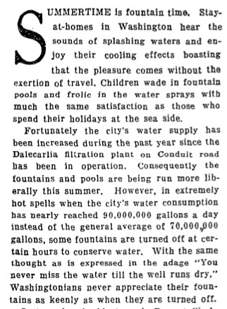 UPDATE, 11:45 a.m.: Thanks to a reader’s tip, we found this 1928 Post article noting that Washingtonians often used the city’s many fountains to cool off. (We wrote about some good fountain options yesterday.)