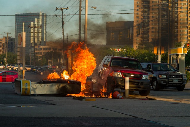 When we peruse our wonderful Flickr pool—stocked with fantastic images from some of the city’s best non-professional (and some professional) photographers—we don’t often expect images of gas stations in flames. But that’s what we found this morning—a set of images from Flickr user F1.2 of an SUV that had a not-so-pleasant run-in with a gas pump over the weekend.