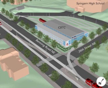 A rendering of the proposed car barn at Spingarn High School.Not if Ward 5 can stop it. While some residents worried that the car barn would negatively affect the students on the academic campus it would be located on, most complaints were procedural. Why was DDOT coming to present plans after those plans had already been seemingly approved? And why was a decision made at the exact time that Ward 5 had no representative on the D.C. Council? And yes, there were arguments that this was all about dumping the city’s unwanted assets in Ward 5. “If this was Sidwell Friends, you wouldn’t have had this type of approach,” said one resident.