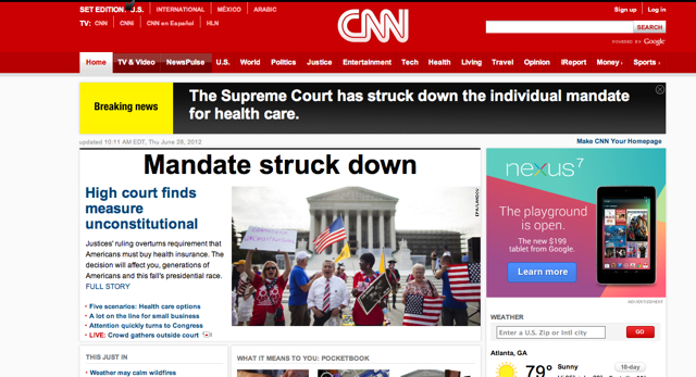 Update, 12 p.m.: CNN issued a formal apology for its preliminary report that the Supreme Court invalidated the individual mandate portion of the Affordable Care Act:
