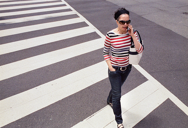There are patterns all around us. This is one of a series of photos in which csuspect waits at crosswalks for stripes to lock horns in battle.