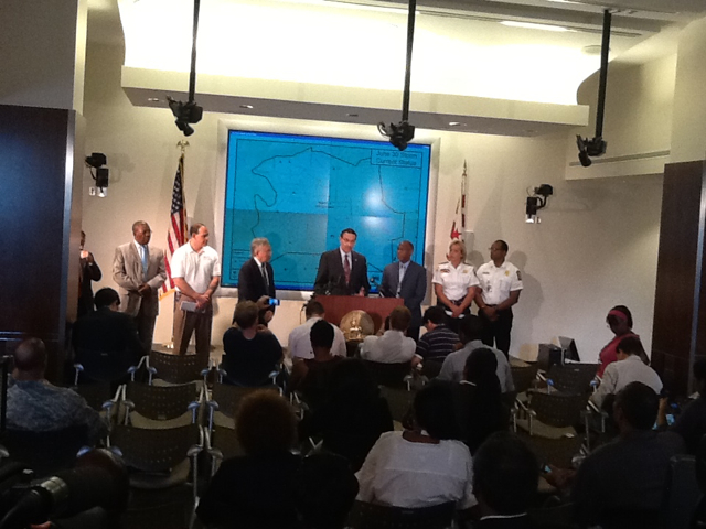 At a press conference today at the District’s emergency management headquarters, Gray said he would seek “consequences” against Pepco, which is projecting that it won’t be until late Friday evening until 90 percent of its customers in D.C. and Maryland see their lights turned back on. About 443,000 Pepco customers lost power in the storm, and as of 10 a.m. today, the utility had reconnected about half. Of the 236,000 customers still in the dark, 46,000 are located in D.C. The Hillcrest neighborhood in Ward 7, where Gray resides, shows one of the heaviest concentrations of outages on Pepco’s service map.