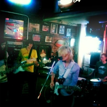 At the High Dive in Seattle, we found our performance legs and lost any remaining concerns we had about how to best play together. We stepped up onto a big stage with good sound and lights. Olivia [Mancini] and Kristin [Forbes] made spontaneous and somehow perfectly timed jumps during “Race Car Driver.” I lunged toward Kristin at the end of the song. In the corner of my eye I saw that her guitar was already above and behind her head and beginning to swing down to meet her hands for the final note. This was problematic because not only was I moving toward her, but I also noticed that she was flying toward me. We exchange slow motion looks of panic. I veer to my right into our guitar amps. Kristin veered to her right, bringing the guitar down squarely on the vocal mic, crashing it to the floor. Olivia, who had already fled to opposite corner of the stage yelled, “Good Night” into the remaining microphone stand.