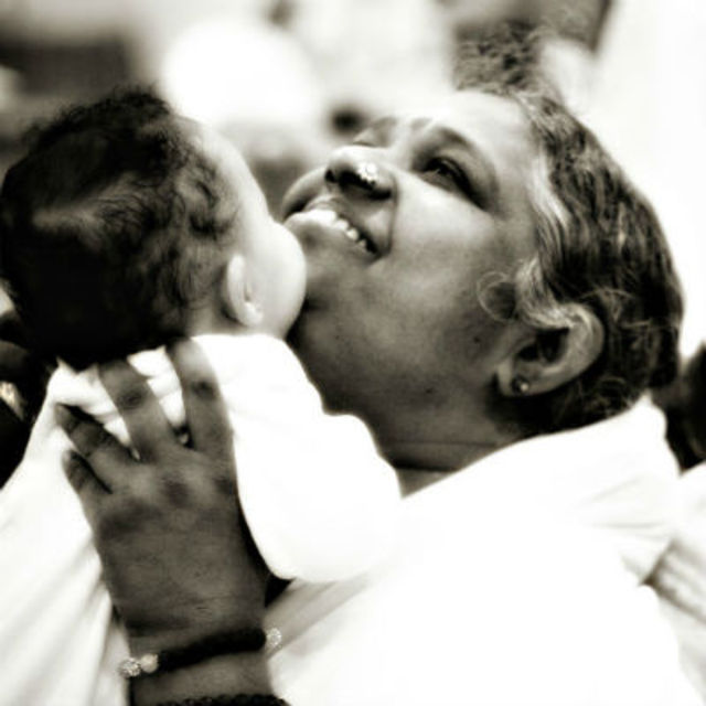 According to Amritanandamayi’s story on her website, she was a spiritually precocious girl from Kerala, South India who deeply felt other people’s suffering. She would suddenly give these individuals hugs to comfort them. People then started calling her “Amma,” which means mother in several languages: