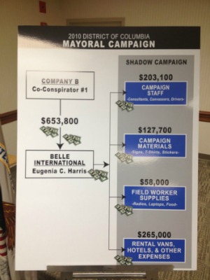 The shadow campaign. Photo by @alanblinderAccording to a statement of offense provided by U.S. Attorney for the District o Columbia Ron Machen, local business owner Jeanne Clarke Harris played a central role in collecting money from friends, family and contacts and illegally using it to fund a variety of expenses for the off-the-books campaign.