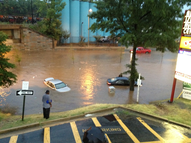 A brief, but intense, rainstorm last night left swaths of D.C. inundated, with some neighborhoods experiencing flash flooding and briefly losing power.