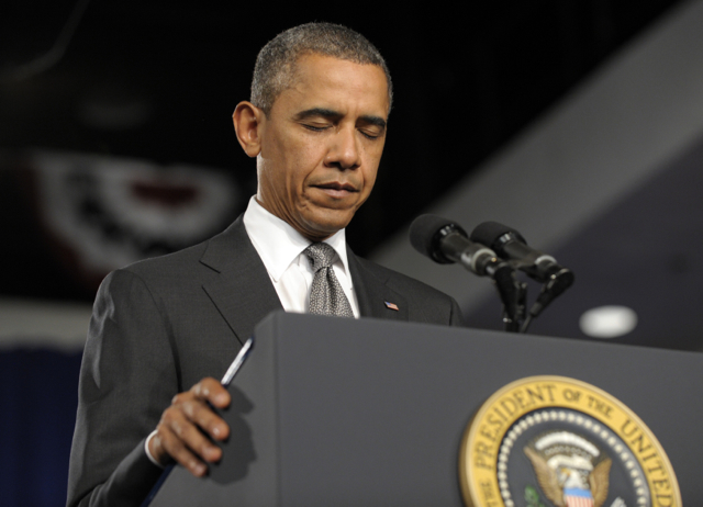 Obama pauses for a moment of silence in Fort Myers, Fla. on Friday while addressing the shooting massacre in Aurora, Colo. (AP Photo/Susan Walsh)