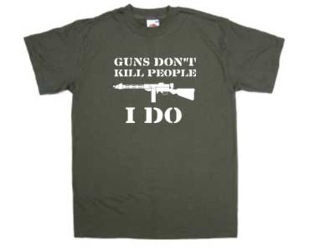 After police were warned of the attack, they learned that Prescott had 13 guns registered to his name. During a Thursday night search of his home in Crofton, police found more than 20 guns and more than 400 rounds of ammunition. They also found Prescott wearing a shirt that won’t likely help his case—it said, “Guns don’t kill people, I do.” (The shirt is available for sale online, if you’re interested.)