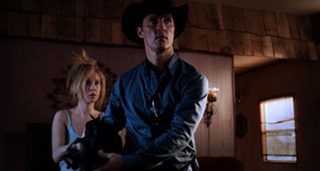Juno Temple and Matthew McConaughey (LD Entertainment)A young trailer park resident (Emile Hirsch) is five large in debt to a violent drug lord. In desperation, he plots to kill his mother, whom he believes has a life insurance policy of $50,000 payable to his sister, virgin nymphet Dottie (Juno Temple). Enter the titular lawman-cum-assassin (Matthew McConaughey) and a six-pack of whoop-ass. Based on the play by Pulitzer- and Tony Award-winning author Tracy Letts, Killer Joe depicts life in trailer park Texas as stormy, brutal, and short, and if Letts finds an ounce of respect for his clumsily plotting characters, director William Friedkin loses it. Friedkin directed iconic 70s pictures like The Exorcist and The French Connection, and more recently directed Michael Shannon in the film of Letts’ play Bug. But Killer Joe drips with contempt for its morally and monetarily impoverished souls, treating them for the most part like a bunch of dumb hicks. Letts’ writing brings it back in the final act with tense scenes where his sadistic lawman parses language with a dry, acidic black humor, but unfortunately this is also where things get sick. Scheming trailer wife Sharla (Gina Gershon) gets punched in the face in a scene that draws laughter, and it gets worse when she is subjected to a degradation that KFC is probably wishing they never allowed. I’m no prude when it comes to violence in movies, and I can’t wait for Django Unchained to unleash its bloody fury upon the holiday season, but this seems like another bad example of the brutal-cool school that Tarantino has wrought. Sorry kids, I don’t think violence against women is funny, and I long for old-fashioned movies that show more respect for humanity, like Faster, Pussycat! Kill! Kill!