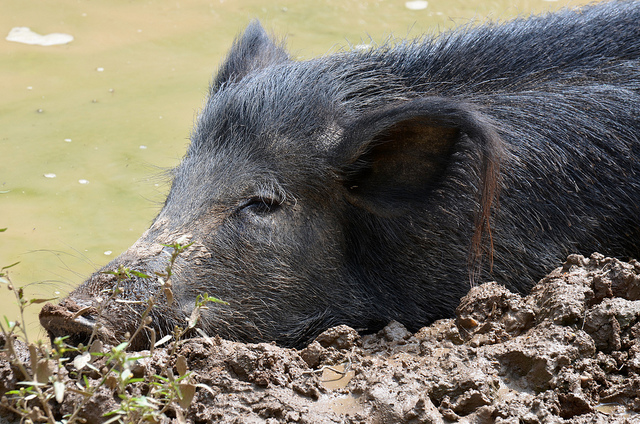 It’s the middle of August. Have we mentioned how bored, whimsical or meandering we sometimes get this time of the year? This piggy has us all beat. From the files of National Zoo habitual Dan Dan the Binary Man, here’s an Ossabow Island Hog taking a break. (EXIF)