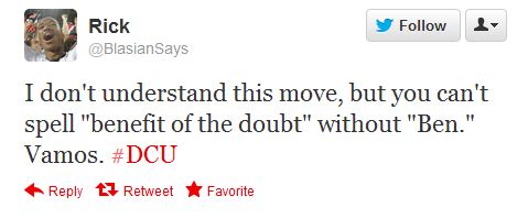 So what do I think of the trade? I was initially disappointed—but honestly I can chalk that up to the fact that I (along with many other United fans) built a respect for the things that Danny Cruz does for United off the pitch. He’s a super likeable guy, a great interview and an active participant in DCU’s community outreach. As for his play on the field, I think he’s always fit the “gritty, give you 110% every time, hustle” type of mold. But Cruz was lacking in other areas – his touch on the ball and decision making often left much to be desired. Those things will come in time—Danny told the Capital Soccer Show in April that he didn’t even start playing soccer until he was 14—but United’s needs are more pressing. I don’t think it’s a bad move for the black and red. And I have faith in both the United front office and Ben Olsen himself. Perhaps Barra Brava member @BlasianSays puts it best himself: