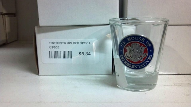 How about a congressional toothpick holder? The glass holder is elegantly accented by a metal seal of the U.S. House of Representatives; you could store your toothpicks the same way that your member of Congress does! This toothpick holder comes in three sizes—you know, for those oddly sized toothpicks you have lying around the house!