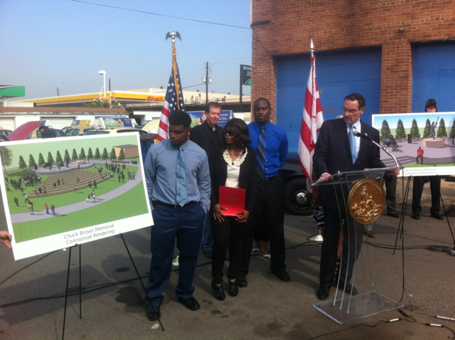 In introducing the sketches for the revamped park, Gray was joined behind the podium by Brown’s family.