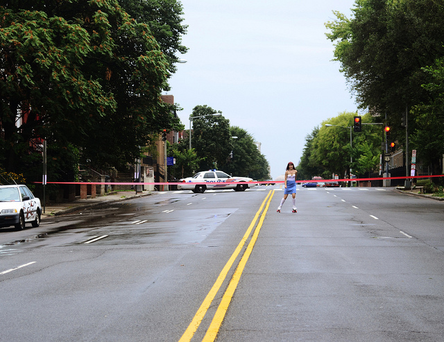 This shot by MysteryLust is a fascinating study in contrasts. A rollerskater blissfully guides along a street closed down by police. Do we know why? No, and the quiet solemnity of the picture stands well enough alone with knowing the answer.