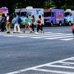 On the corner of 12th and F Streets NW, a family of four steps off the Metro escalator.
