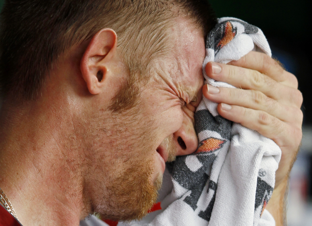 We’d be face-palming too if someone was taking a poll about our arms. (AP Photo/Haraz N. Ghanbari)