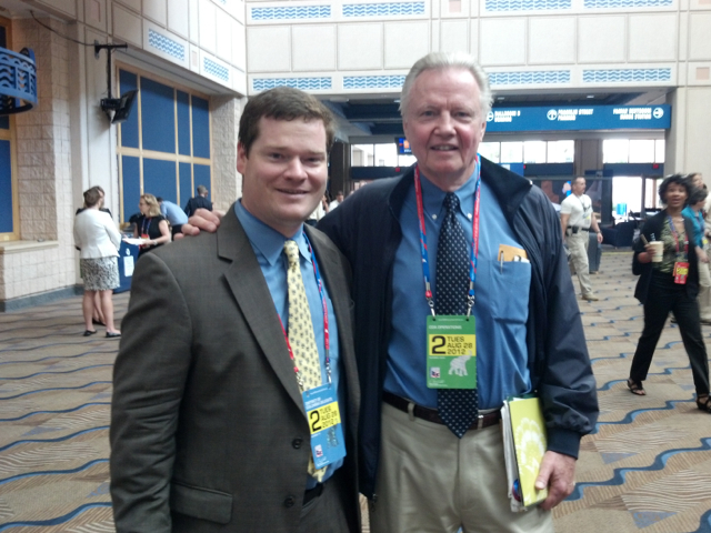 Then, after speaking with a reporter from The Washington Post, it happened: Jon Voight walked in. That’s right, I was eye-to-eye with a full one-half of the Republican convention’s Hollywood contingent. Recognizing the commitment to meet the editorial expectations of this high-paying writing gig (Editor’s note: Stop griping, Mara!), I knew I needed a photo.