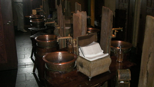 Mie N Yu’s facilities, with their bamboo fountains and textured bamboo doors and wall paneling, provide diners unsatisfied by their mediocre dinners a chance to escape to an environment that feels more like a grotto in a South Asian cove. The bathroom contest is sponsored by Cintas, the restaurant uniform and maintenance firm.