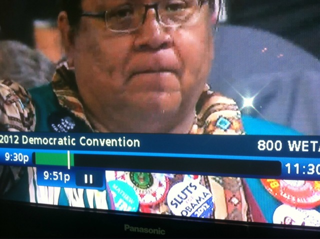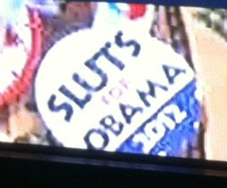 And then there were the “Sluts for Obama.” A DCist tipster caught a convention-goer as the camera panned over them, and noticed that they were wearing a “Sluts for Obama” button.