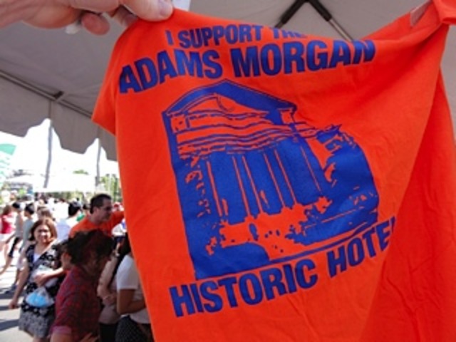 At yesterday’s annual Adams Morgan Day, supporters of the hotel—led by Brian Friedman, one of the local partners behind the 220-room, seven-story hotel—handed out the t-shirts to residents and visitors who signed a letter in support of the hotel. The letters will be sent to the Zoning Commission, which last week started public hearings on the project that will result in an up or down vote on whether it goes from renderings to reality.