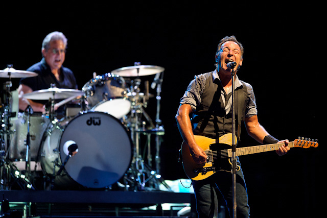 “I hear there’s some pretty good baseball being played here,” Springsteen said roughly one-eighth of the way through his marathon three-hour and thirty-five minute set. He followed up with a polite “Good for you!” (Hey, his Yankees are number one in their division, too.) It was a politeness that a handful of fanatical football fans in the crowd didn’t return when he referenced the New York Giants in his performance of his newest album’s title track, “Wrecking Ball.” Then again, what’s more American than trash talk, I suppose.