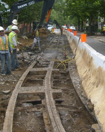 The streetcar tracks in Georgetown. Photo courtesy of the O & P Streets Rehabilitation ProjectDid you hear that Georgetown is getting a streetcar? Well, not really, but kind of.
