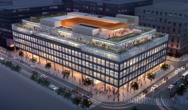 If the architects tasked with re-imagining the Martin Luther King Jr. Memorial Library were unencumbered by budgets or political realities, they’d cut a big hole in the middle of the boxy Mies van der Rohe-designed building, letting light filter down into to the library’s Great Hall through an atrium stretching up four stories. Two floors would be tacked onto the existing structure, offering space for an additional tenant. A roof garden and ground-level café would provide amenities to draw in readers and passersby alike.