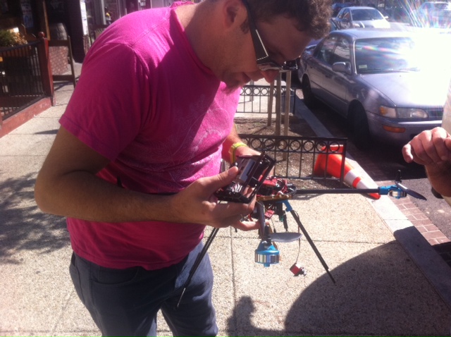 Crosby said he first assumed it was a hanging planter, but upon closer inspection noticed its four rotors and a camera that had been mounted on the quadcopter sitting nearby. After checking the video footage of the quadcopter’s takeoff and checking it against satellite images on Google, he was able to narrow down the location of its takeoff on that ill-fated flight. Last Friday, he knocked on the door of Eidinger’s office in Adams Morgan to tell him that he had found the quadcopter. (Crosby said he didn’t read any of the media coverage of the quadcopter’s loss, and it was only coincidence that he stopped by Eidinger office the same day that Eidinger was talking about the incident on The Kojo Nnamdi Show.)
