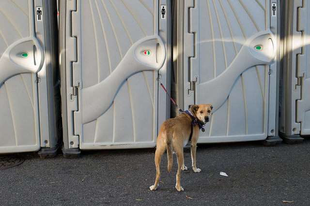 Perhaps photographer F1.2 might know how long this pup was out there, but I hope he didn’t have to wait long for an empty stall.
