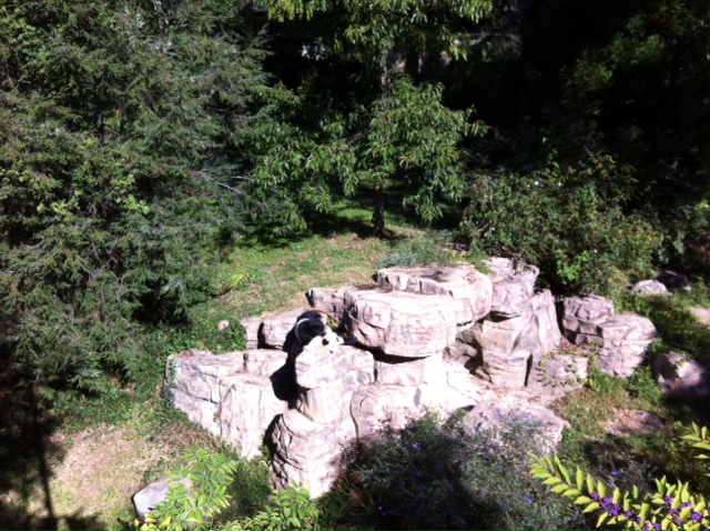 Mei Xiang and Tian Tian were on display in the panda den behind the zoo officials’ press conference, with the female laying on a rock formation and looking a bit skinnier than usual. Because pandas tend not to eat in the first few days after giving birth, Mei Xiang lost a considerable amount of weight, down to about 220 pounds from her usual size of 240 pounds, Moore said.