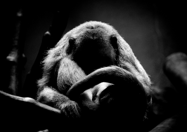 Flickr contributor theupper catches this monkey as it sleeps, but the way the shadows fall upon its face and body makes it seem like it’s ready to pounce. Back away slowly…