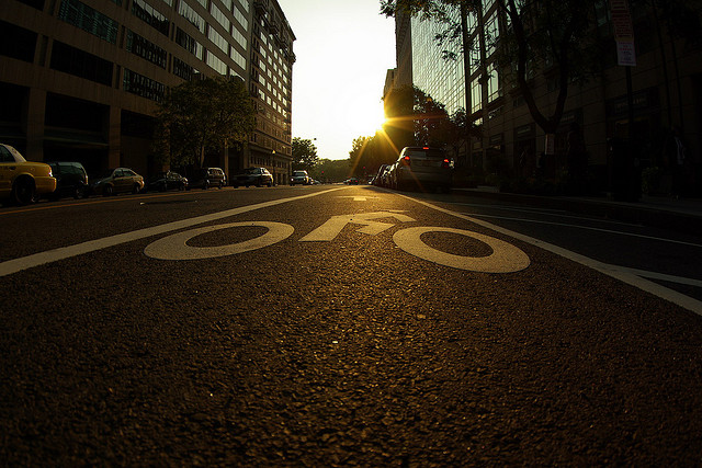 A bike lane on E Street NW. (Photo by philliefan99)