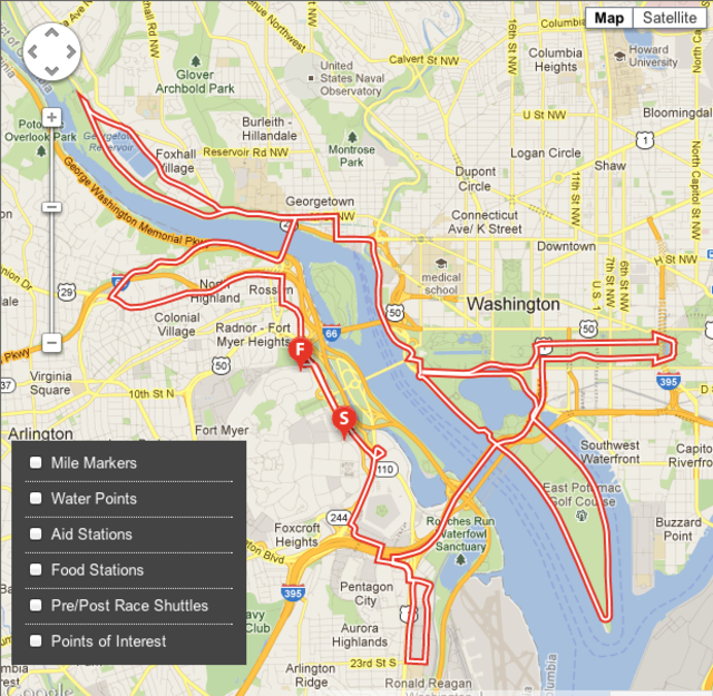 At 7:55 a.m. on Sunday, some 30,000 runners will run throughout D.C. and Northern Virginia in the 37th annual Marine Corps Marathon. Presented with minimal comment, here is the course participants will trace along their 26.2-mile efforts.