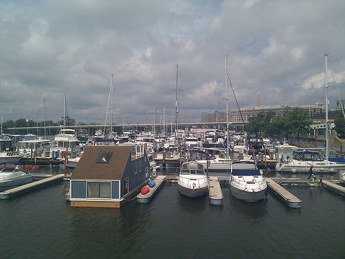 The Gangplank Marina in SW is home to 120 residents. Taken from GPSA.Most D.C. homeowners have a lot to worry about when it comes to severe weather, but their homes floating away certainly isn’t one of them. But for the 120 residents that live aboard houseboats at the Gangplank Marina in Southwest D.C., it’s one of the things on their minds as they settle in for some rough waters during Hurricane Sandy.