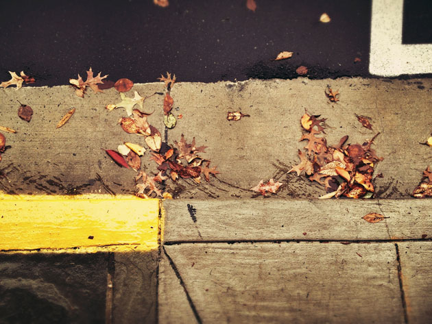 This strong composition by Noe Todorovich makes abstract beauty out of dead leaves and asphalt. (EXIF)
