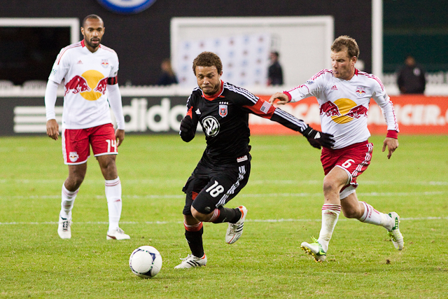 Team Notes: DCist will be in Harrison, N.J. on Wednesday night to cover the second leg of United’s playoff series with the New York Red Bulls. Follow along at @DCist_Pablo for updates during the game and quotes from coaches and layers afterward … We reported last week that defending MLS most valuable player Dwayne De Rosario was continuing his recovery at a swift pace, running sprints in practice and participating in short-sided games. That continues to develop, as De Rosario was upgraded to “questionable” on the injury report for Wednesday’s game. He didn’t make the 18-man roster on saturday, but could see action in New York. More than likely, we won’t see De Rosario until the Conference Finals, if United qualifies. … Mayor Vince Gray was in attendance. … MLS Commissioner Don Garber was also there and assured those in attendance that the game on Wednesday go forward as planned. The power at Red Bull Arena has been restored, though it is highly unlikely that PATH trains between New York City and New Jersey will be operational in time for the match.