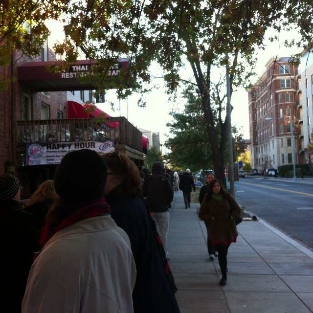 It wasn’t any faster one precinct over. The line erupting out of St. Thomas’ Episcopal Parish stretched all the way down Church Street NW, hooked on to 18th Street and snaked all the way down to P. No one was stepping out of line in frustration.