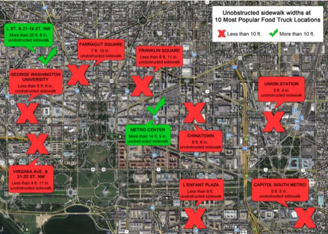 Late last week the D.C. Food Truck Association launched a petition—Rules That Work—to encourage Mayor Vince Gray to drop a regulation that would limit food trucks to locations where there are 10 feet of “unobstructed” sidewalk. According to a survey of downtown D.C. done by the association, that rule alone would push food trucks out of eight of the 10 most popular spots, including Farragut Square, Franklin Square, Chinatown, and Capitol South.