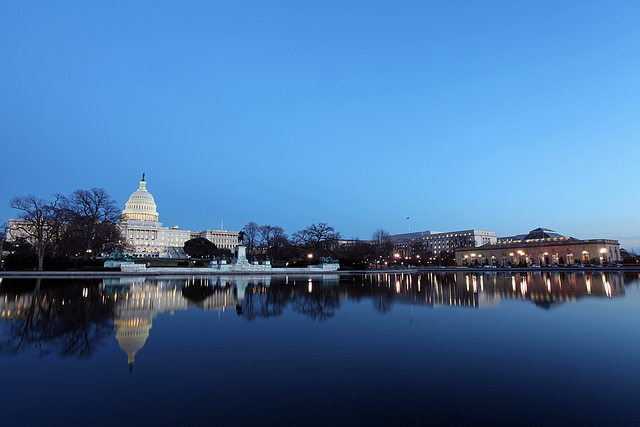 Two early-30s suits on Friday night, walking along Pennsylvania Avenue near the Capitol South Metro: