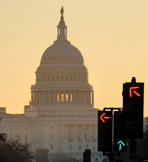 Biketripper nicely sets the traffic lights on Pennsylvania Avenue against a backdrop of the U.S. Capitol, creating an unintended yet necessary inquiry as to where exactly the country is headed.