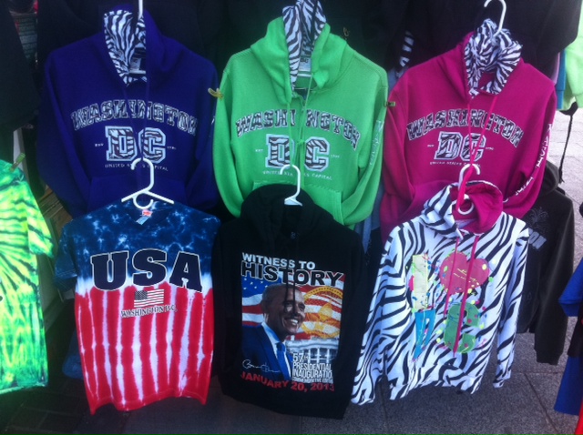 The last time we went shopping for D.C. souvenirs, we came across the congressional toothpick holder, which oddly enough looks exactly like a shot glass. Today, it was more standard fare—the t-shirts and sweaters sold by mobile vendors just off of the National Mall.