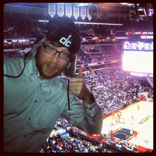 Wiseman (Photo by Pablo Maurer)An estimated 4,000-5,000 fans were sprinkled throughout the cavernous Verizon Center, and as the final seconds ticked away there was an underwhelming, completely controlled sense of half-excitement. “Cut the nets down!” screamed one particularly intoxicated patron from the upper deck. (Alright, it was me.) Fellow DCist contributor Andrew Wiseman and I scored two tickets on StubHub, taking advantage of the flood of seats available on the site for pennies on the dollar. Our two upper-deck seats cost us a total of $7, and we certainly got our money’s worth.